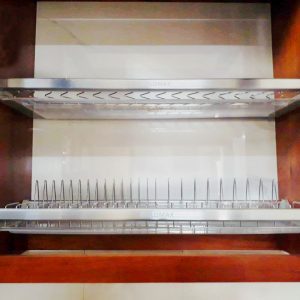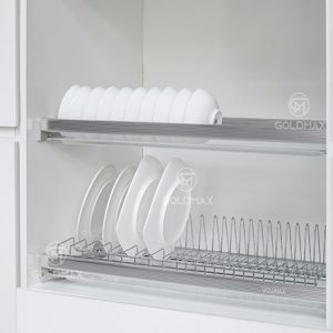 - Khung nhôm mạ crom sáng bóng, giúp tăng độ cứng, để được nhiều bát đĩa hơn.